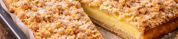 feiner Hefeboden, mit Vanillepudding und Streusel